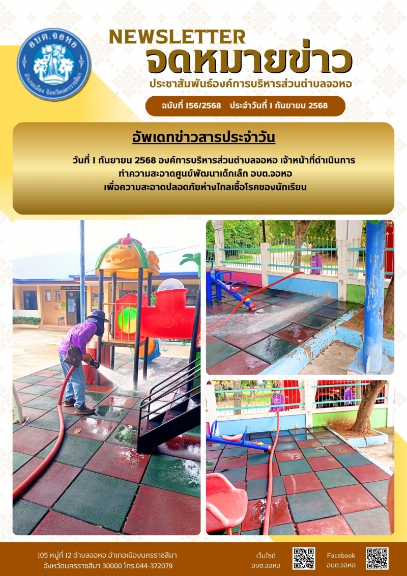 องค์การบริหารส่วนตำบลจอหอ ขอเผยแพร่ ข้อมูล ข่าวสาร กิจกรรม ผลการดำเนินงาน ขององค์การบริหารส่วนตำบลจอหอ ดังนี้ จดหมายข่าว ฉบับประจำวันวันที่ 1 กันยายน 2568