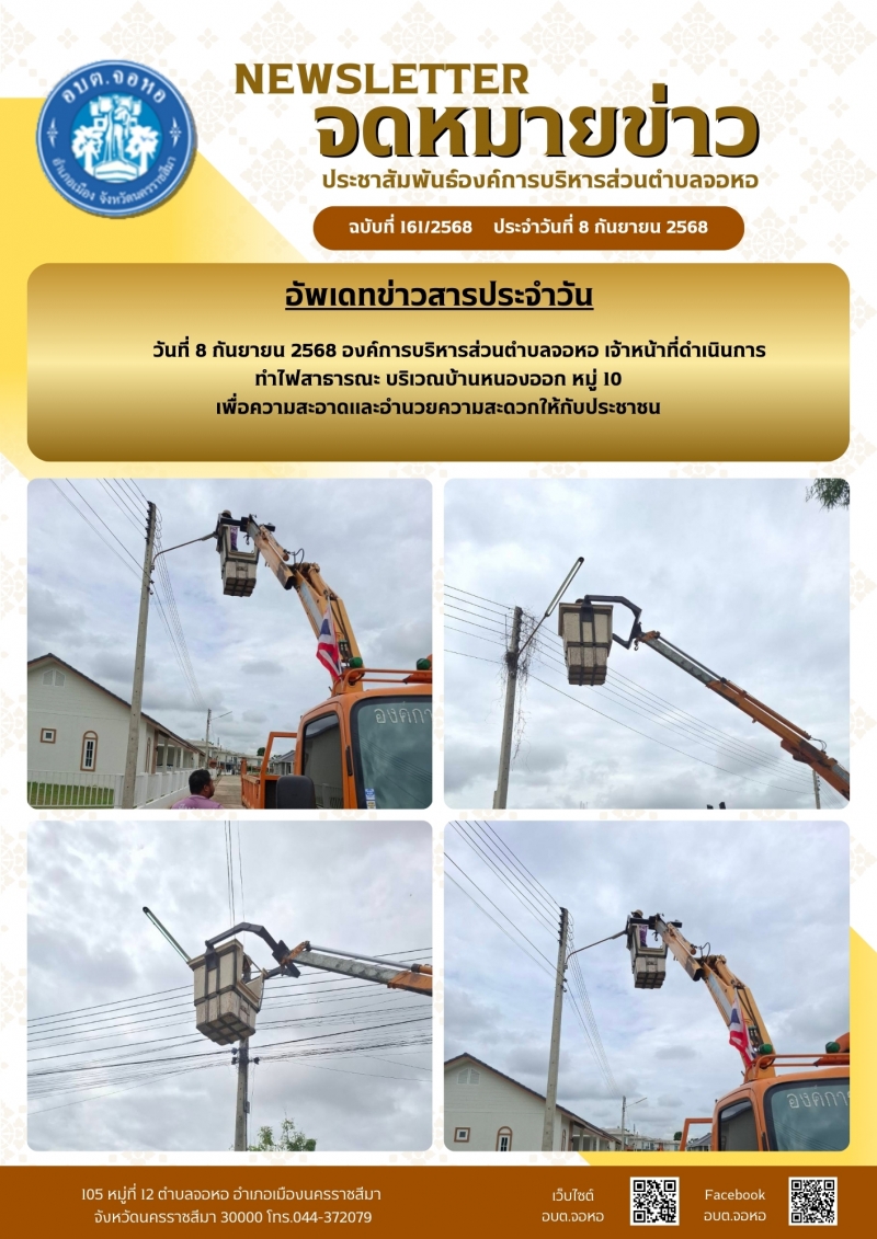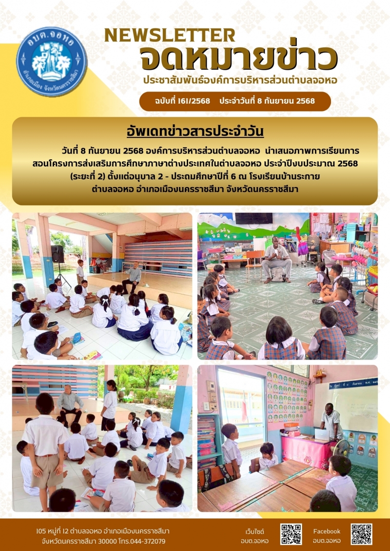 องค์การบริหารส่วนตำบลจอหอ ขอเผยแพร่ ข้อมูล ข่าวสาร กิจกรรม ผลการดำเนินงาน ขององค์การบริหารส่วนตำบลจอหอ ดังนี้ จดหมายข่าว ฉบับประจำวันวันที่ 8 กันยายน 2568