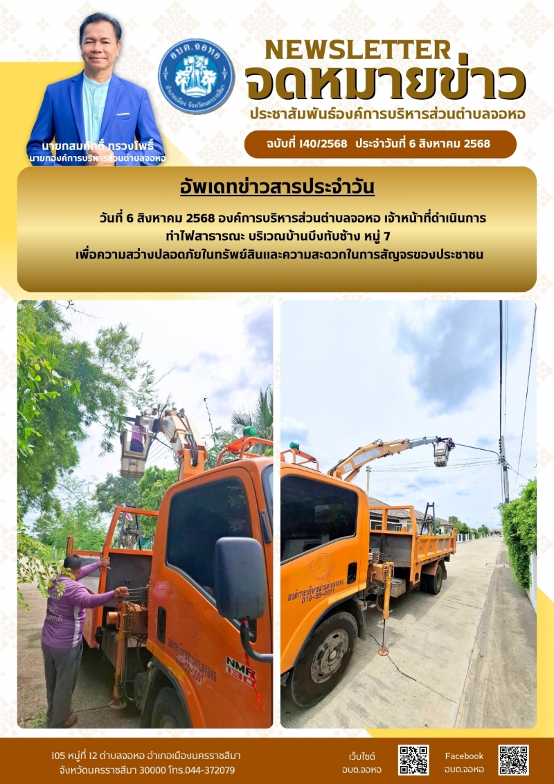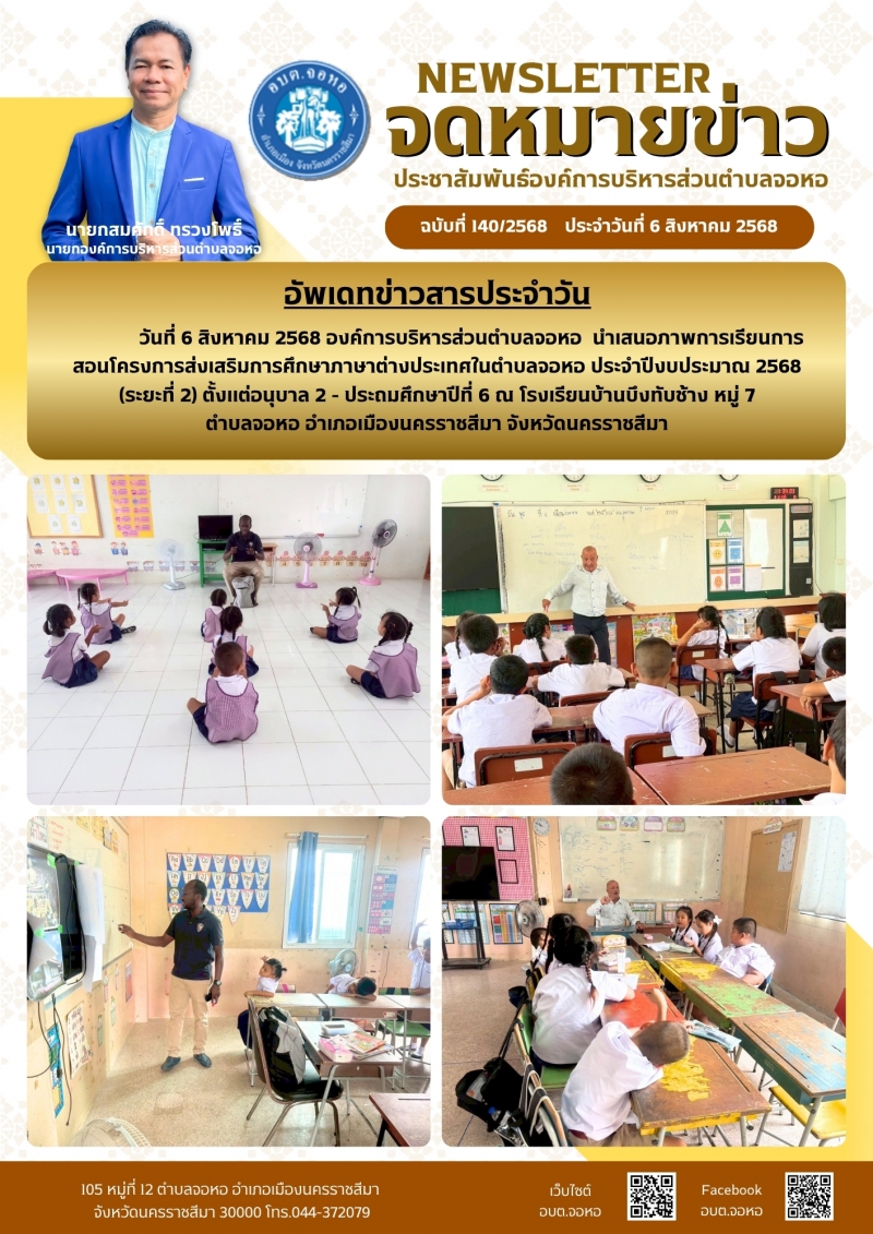 องค์การบริหารส่วนตำบลจอหอ ขอเผยแพร่ ข้อมูล ข่าวสาร กิจกรรม ผลการดำเนินงาน ขององค์การบริหารส่วนตำบลจอหอ ดังนี้ จดหมายข่าว ฉบับประจำวันวันที่ 6 สิงหาคม 2568