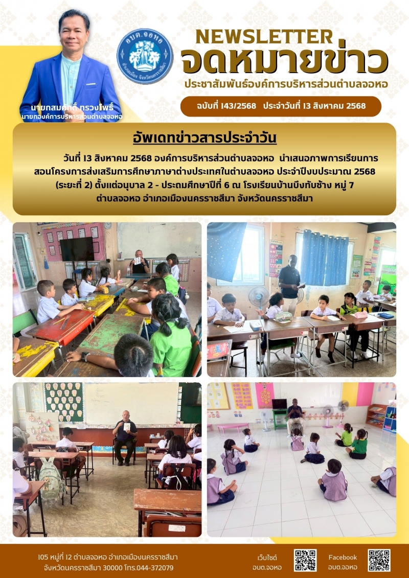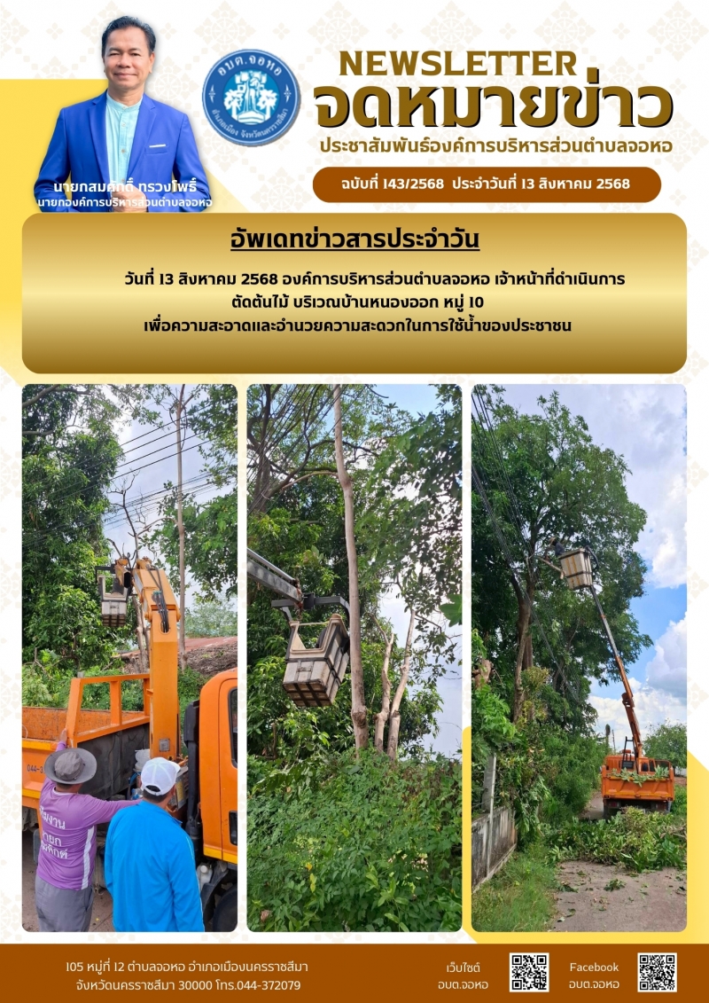 องค์การบริหารส่วนตำบลจอหอ ขอเผยแพร่ ข้อมูล ข่าวสาร กิจกรรม ผลการดำเนินงาน ขององค์การบริหารส่วนตำบลจอหอ ดังนี้ จดหมายข่าว ฉบับประจำวันวันที่ 13 สิงหาคม 2568