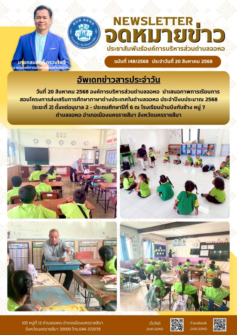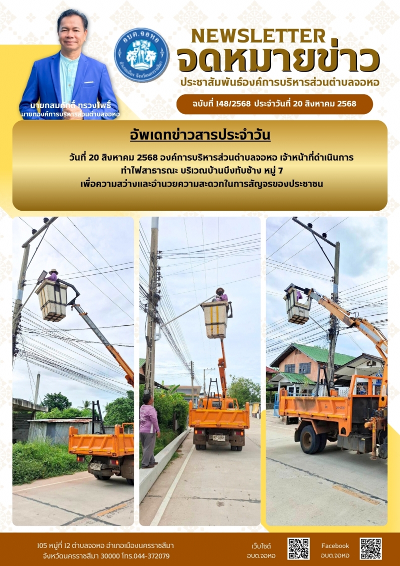 องค์การบริหารส่วนตำบลจอหอ ขอเผยแพร่ ข้อมูล ข่าวสาร กิจกรรม ผลการดำเนินงาน ขององค์การบริหารส่วนตำบลจอหอ ดังนี้ จดหมายข่าว ฉบับประจำวันวันที่ 20 สิงหาคม 2568