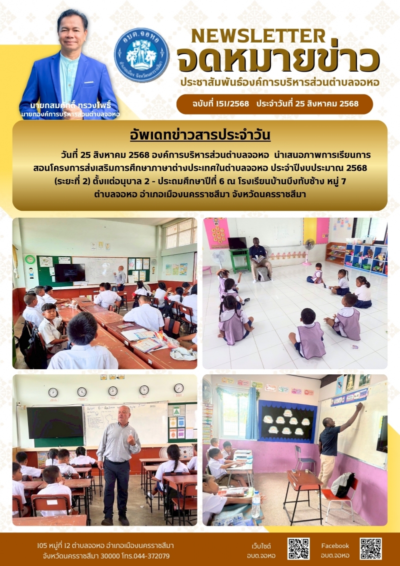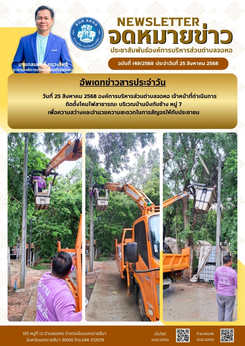 องค์การบริหารส่วนตำบลจอหอ ขอเผยแพร่ ข้อมูล ข่าวสาร กิจกรรม ผลการดำเนินงาน ขององค์การบริหารส่วนตำบลจอหอ ดังนี้ จดหมายข่าว ฉบับประจำวันวันที่ 25 สิงหาคม 2568