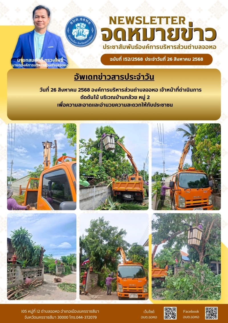 องค์การบริหารส่วนตำบลจอหอ ขอเผยแพร่ ข้อมูล ข่าวสาร กิจกรรม ผลการดำเนินงาน ขององค์การบริหารส่วนตำบลจอหอ ดังนี้ จดหมายข่าว ฉบับประจำวันวันที่ 26 สิงหาคม 2568