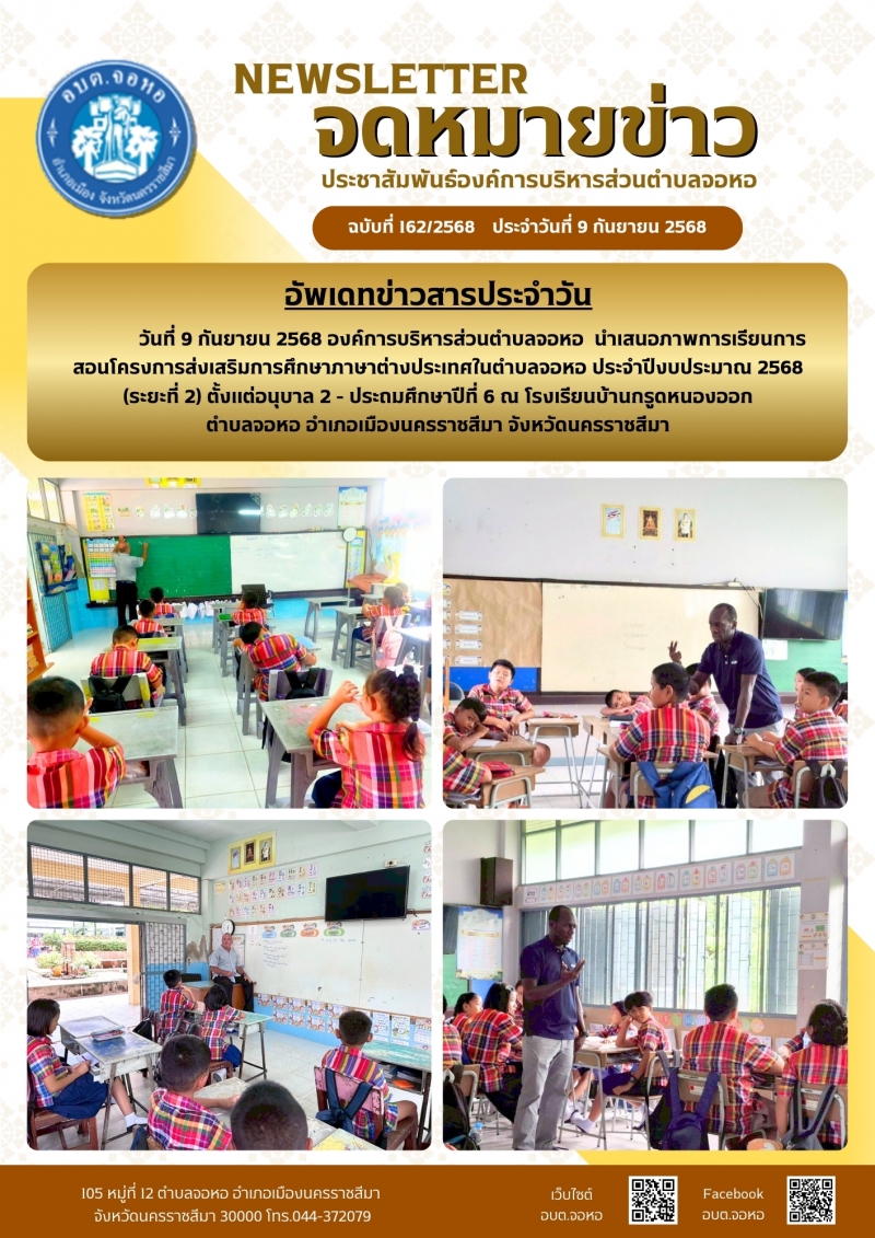 องค์การบริหารส่วนตำบลจอหอ ขอเผยแพร่ ข้อมูล ข่าวสาร กิจกรรม ผลการดำเนินงาน ขององค์การบริหารส่วนตำบลจอหอ ดังนี้ จดหมายข่าว ฉบับประจำวันวันที่ 9 กันยายน 2568