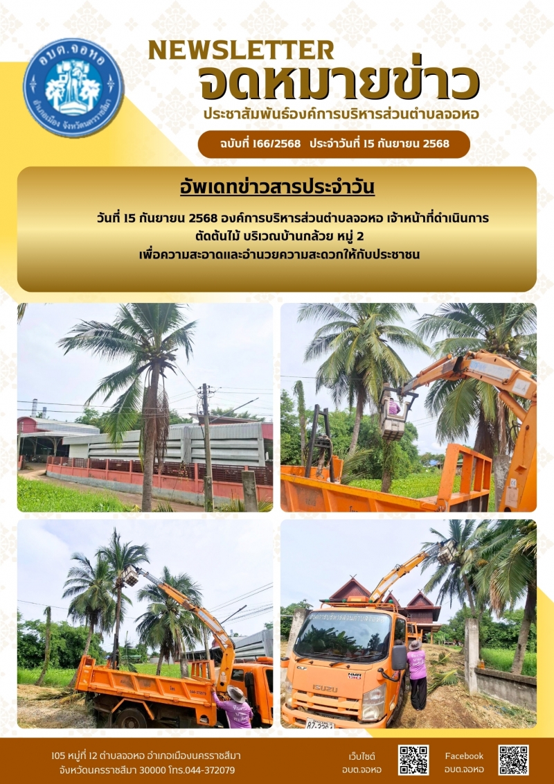 องค์การบริหารส่วนตำบลจอหอ ขอเผยแพร่ ข้อมูล ข่าวสาร กิจกรรม ผลการดำเนินงาน ขององค์การบริหารส่วนตำบลจอหอ ดังนี้ จดหมายข่าว ฉบับประจำวันวันที่ 15 กันยายน 2568