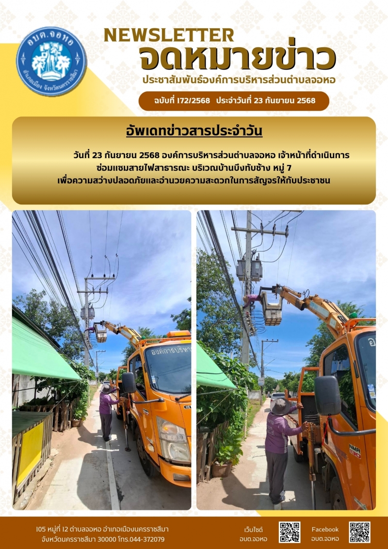 องค์การบริหารส่วนตำบลจอหอ ขอเผยแพร่ ข้อมูล ข่าวสาร กิจกรรม ผลการดำเนินงาน ขององค์การบริหารส่วนตำบลจอหอ ดังนี้ จดหมายข่าว ฉบับประจำวันวันที่ 23 กันยายน 2568