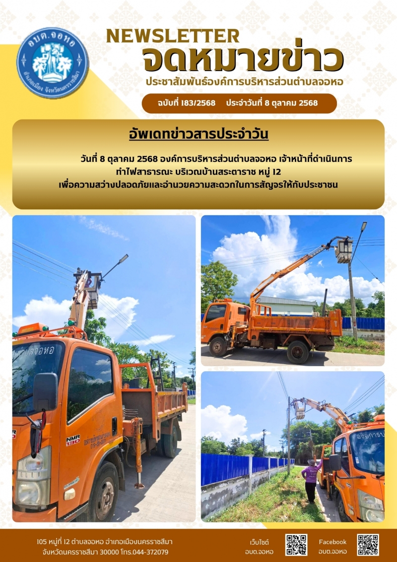 องค์การบริหารส่วนตำบลจอหอ ขอเผยแพร่ ข้อมูล ข่าวสาร กิจกรรม ผลการดำเนินงาน ขององค์การบริหารส่วนตำบลจอหอ ดังนี้ จดหมายข่าว ฉบับประจำวันวันที่ 8 ตุลาคม 2568