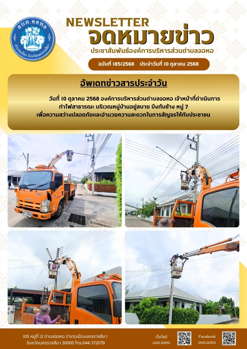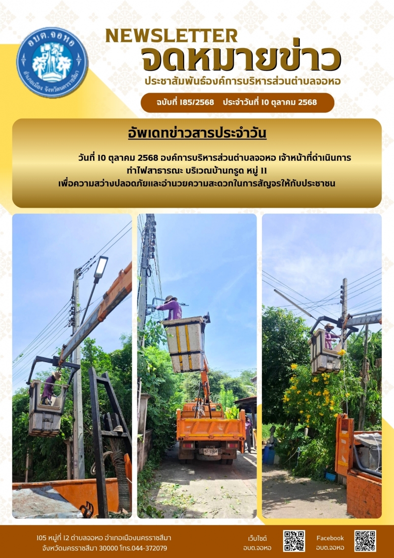 องค์การบริหารส่วนตำบลจอหอ ขอเผยแพร่ ข้อมูล ข่าวสาร กิจกรรม ผลการดำเนินงาน ขององค์การบริหารส่วนตำบลจอหอ ดังนี้ จดหมายข่าว ฉบับประจำวันวันที่ 10 ตุลาคม 2568