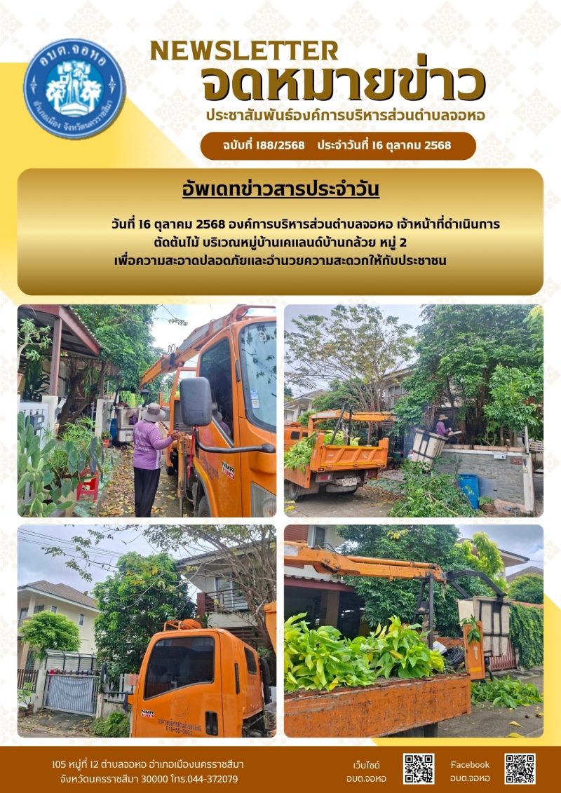องค์การบริหารส่วนตำบลจอหอ ขอเผยแพร่ ข้อมูล ข่าวสาร กิจกรรม ผลการดำเนินงาน ขององค์การบริหารส่วนตำบลจอหอ ดังนี้ จดหมายข่าว ฉบับประจำวันวันที่ 16 ตุลาคม 2568