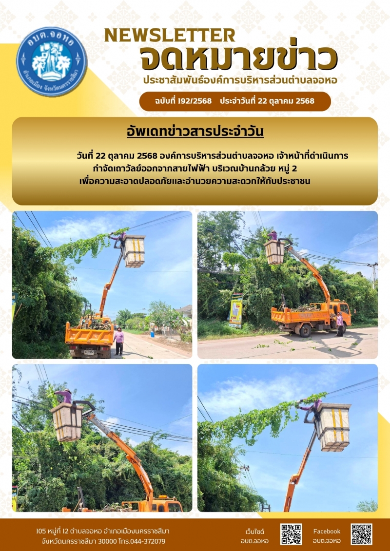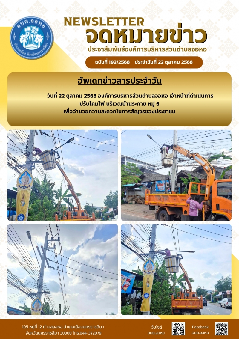 องค์การบริหารส่วนตำบลจอหอ ขอเผยแพร่ ข้อมูล ข่าวสาร กิจกรรม ผลการดำเนินงาน ขององค์การบริหารส่วนตำบลจอหอ ดังนี้ จดหมายข่าว ฉบับประจำวันวันที่ 22 ตุลาคม 2568