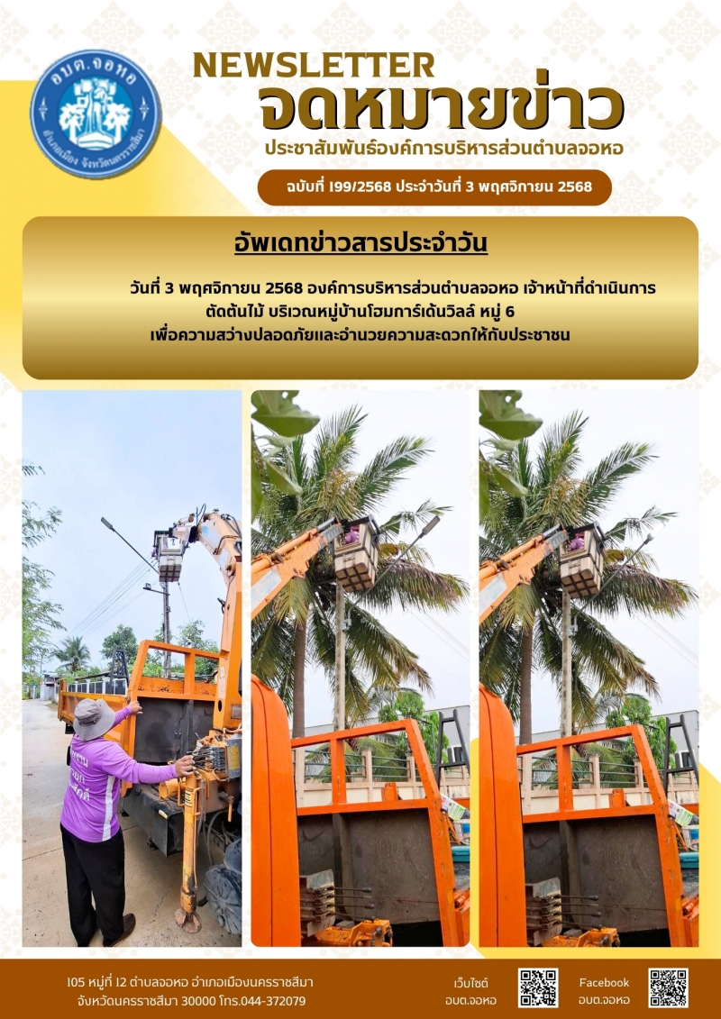 องค์การบริหารส่วนตำบลจอหอ ขอเผยแพร่ ข้อมูล ข่าวสาร กิจกรรม ผลการดำเนินงาน ขององค์การบริหารส่วนตำบลจอหอ ดังนี้ จดหมายข่าว ฉบับประจำวันวันที่ 3 พฤศจิกายน 2568