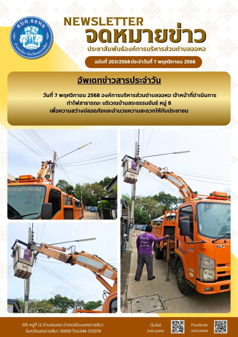 องค์การบริหารส่วนตำบลจอหอ ขอเผยแพร่ ข้อมูล ข่าวสาร กิจกรรม ผลการดำเนินงาน ขององค์การบริหารส่วนตำบลจอหอ ดังนี้ จดหมายข่าว ฉบับประจำวันวันที่ 7 พฤศจิกายน 2568