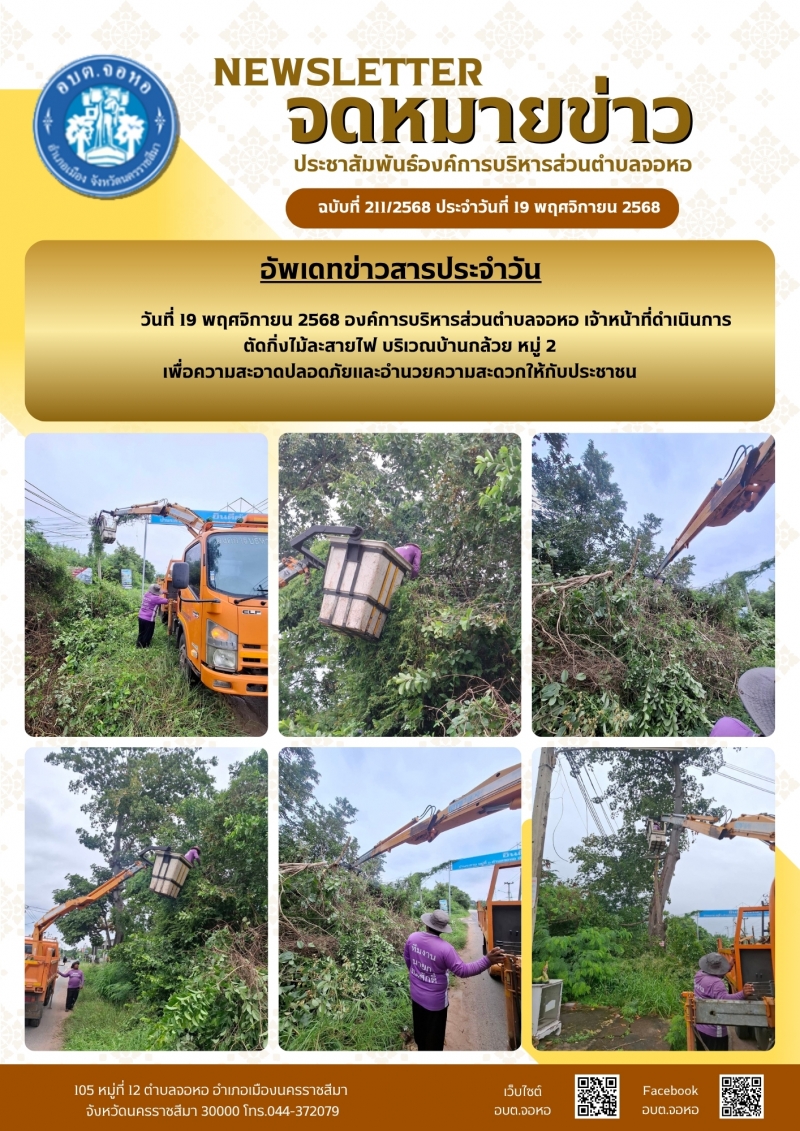 องค์การบริหารส่วนตำบลจอหอ ขอเผยแพร่ ข้อมูล ข่าวสาร กิจกรรม ผลการดำเนินงาน ขององค์การบริหารส่วนตำบลจอหอ ดังนี้ จดหมายข่าว ฉบับประจำวันวันที่ 19 พฤศจิกายน 2568