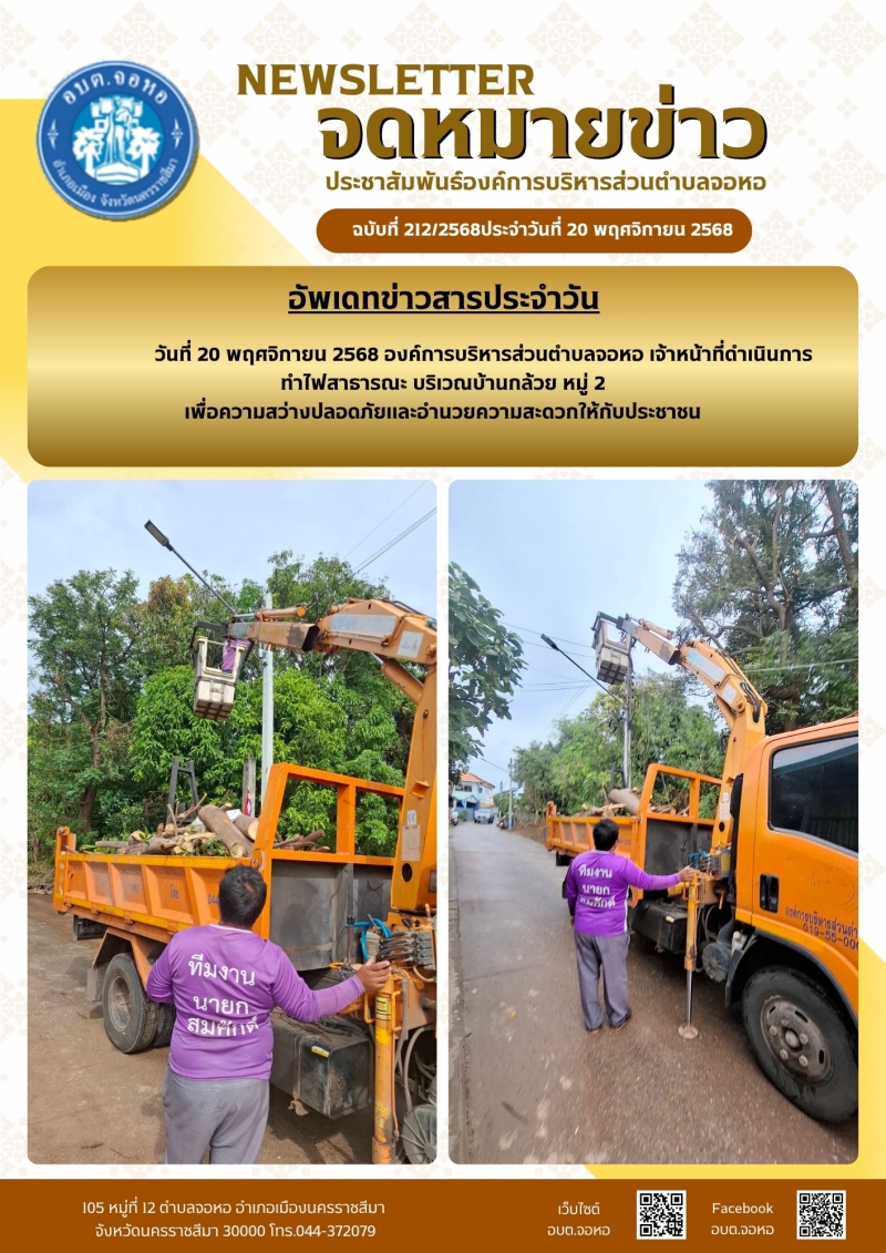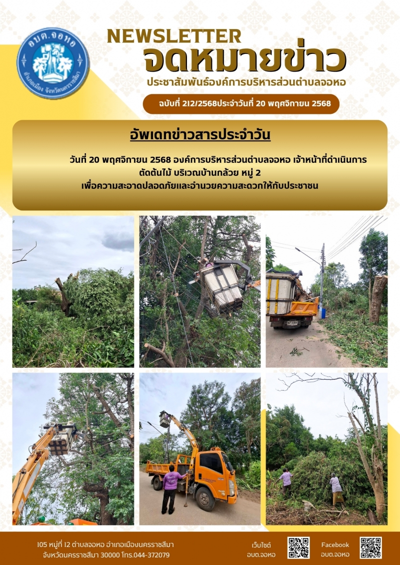 องค์การบริหารส่วนตำบลจอหอ ขอเผยแพร่ ข้อมูล ข่าวสาร กิจกรรม ผลการดำเนินงาน ขององค์การบริหารส่วนตำบลจอหอ ดังนี้ จดหมายข่าว ฉบับประจำวันวันที่ 20 พฤศจิกายน 2568