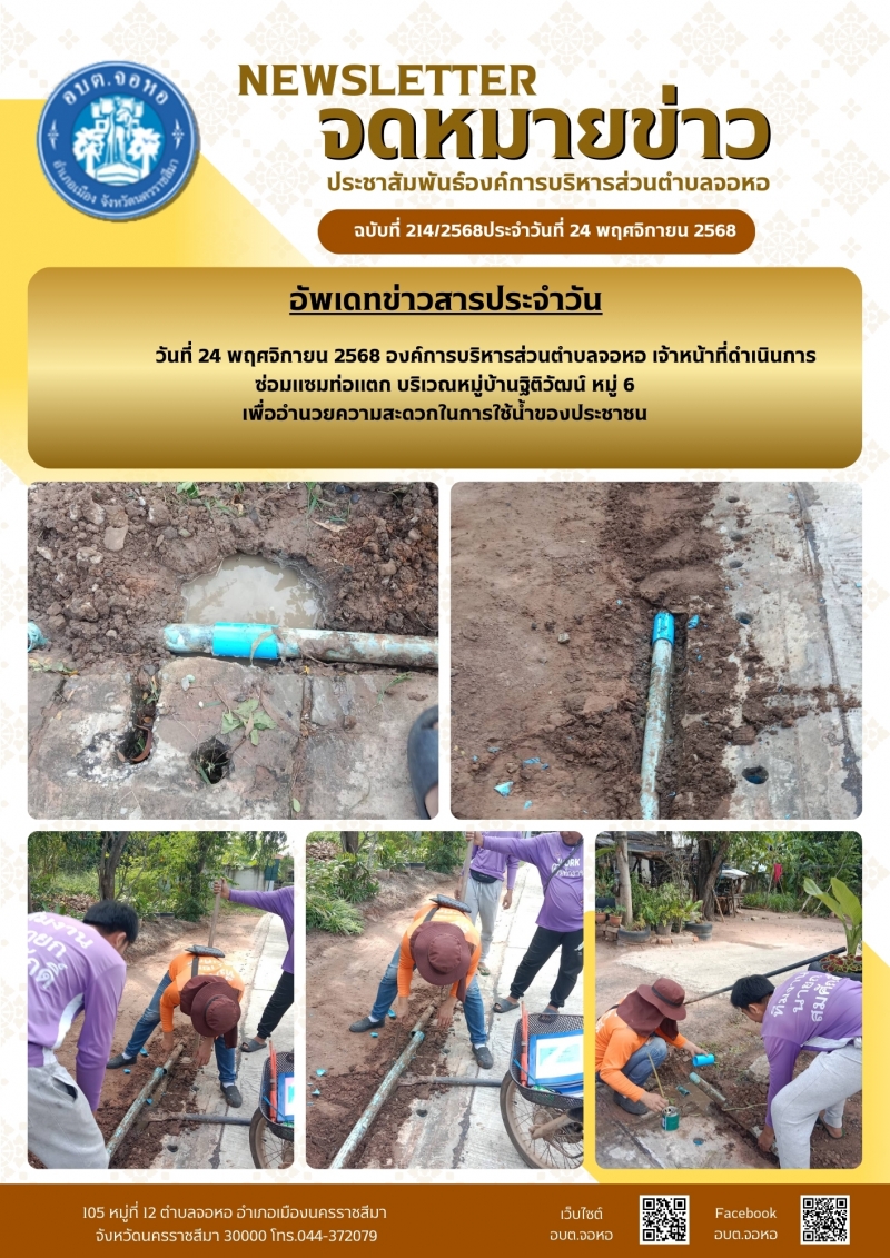 องค์การบริหารส่วนตำบลจอหอ ขอเผยแพร่ ข้อมูล ข่าวสาร กิจกรรม ผลการดำเนินงาน ขององค์การบริหารส่วนตำบลจอหอ ดังนี้ จดหมายข่าว ฉบับประจำวันวันที่ 24 พฤศจิกายน 2568