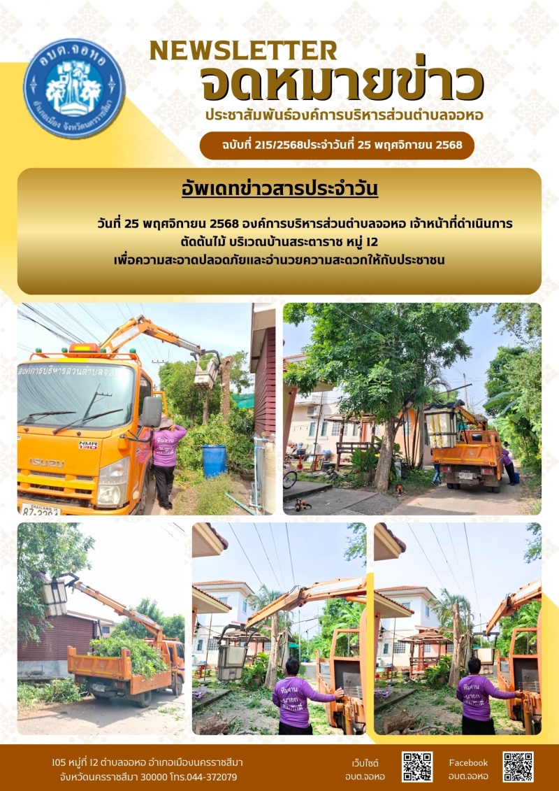 องค์การบริหารส่วนตำบลจอหอ ขอเผยแพร่ ข้อมูล ข่าวสาร กิจกรรม ผลการดำเนินงาน ขององค์การบริหารส่วนตำบลจอหอ ดังนี้ จดหมายข่าว ฉบับประจำวันวันที่ 25 พฤศจิกายน 2568