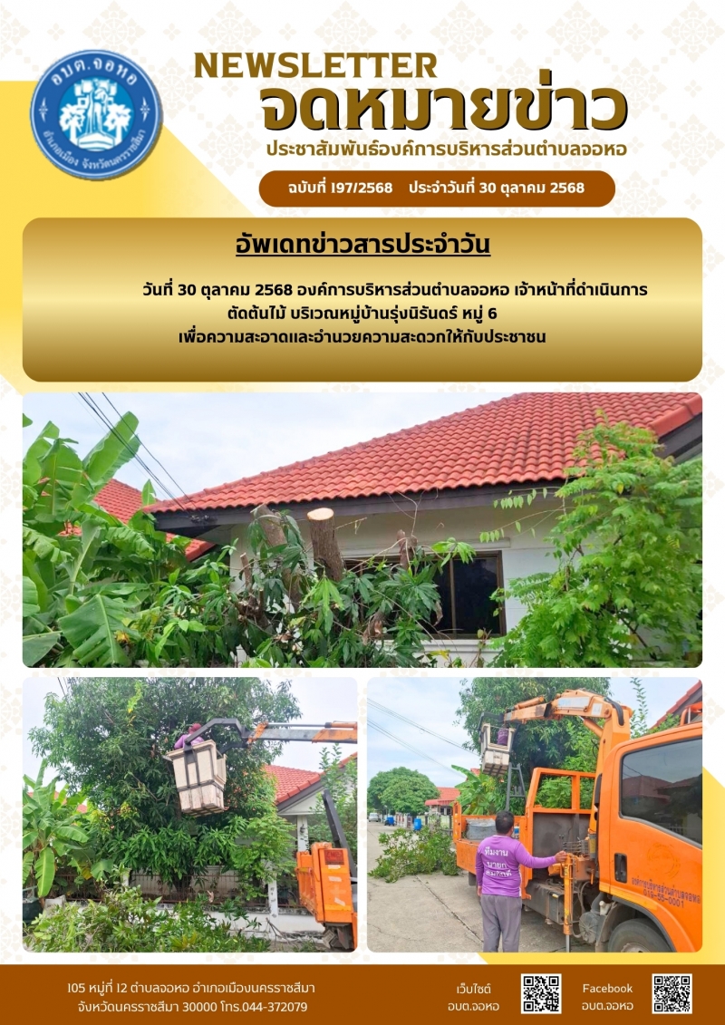 องค์การบริหารส่วนตำบลจอหอ ขอเผยแพร่ ข้อมูล ข่าวสาร กิจกรรม ผลการดำเนินงาน ขององค์การบริหารส่วนตำบลจอหอ ดังนี้ จดหมายข่าว ฉบับประจำวันวันที่ 30 ตุลาคม 2568