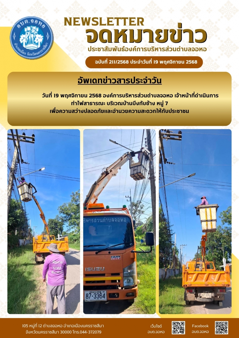องค์การบริหารส่วนตำบลจอหอ ขอเผยแพร่ ข้อมูล ข่าวสาร กิจกรรม ผลการดำเนินงาน ขององค์การบริหารส่วนตำบลจอหอ ดังนี้ จดหมายข่าว ฉบับประจำวันวันที่ 19 พฤศจิกายน 2568
