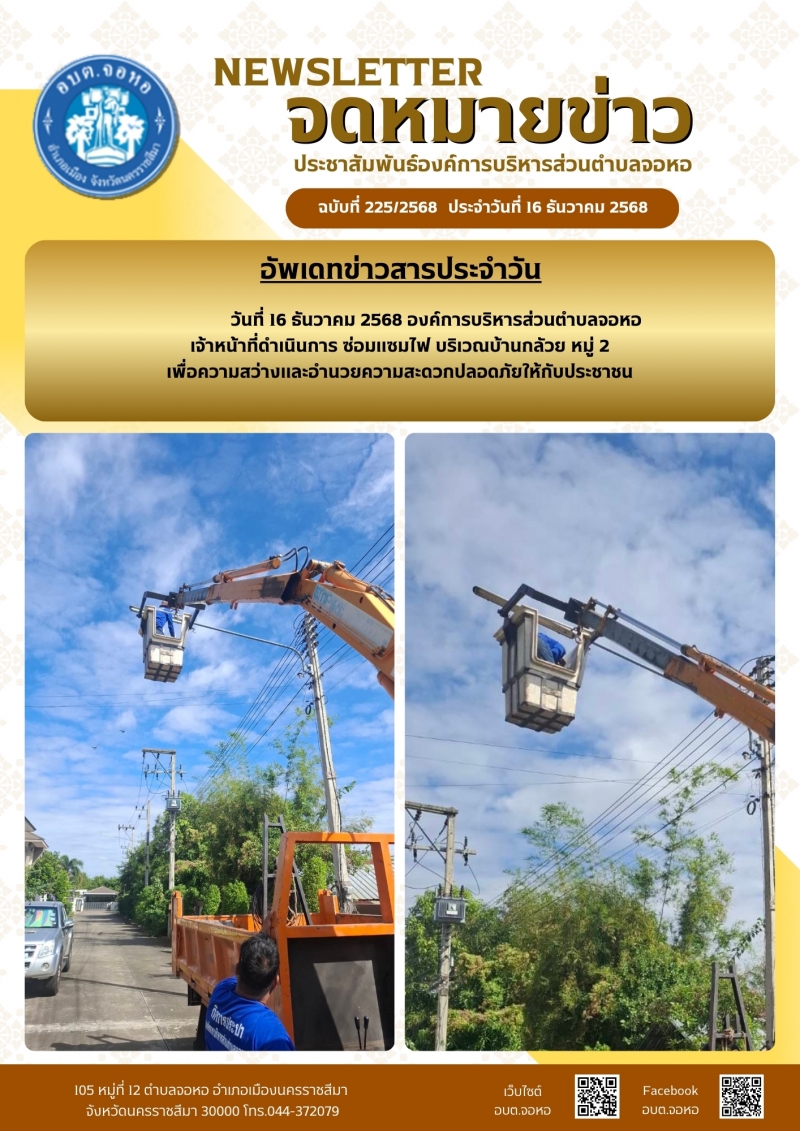 องค์การบริหารส่วนตำบลจอหอ ขอเผยแพร่ ข้อมูล ข่าวสาร กิจกรรม ผลการดำเนินงาน ขององค์การบริหารส่วนตำบลจอหอ ดังนี้ จดหมายข่าว ฉบับประจำวันวันที่ 16 ธันวาคม 2568