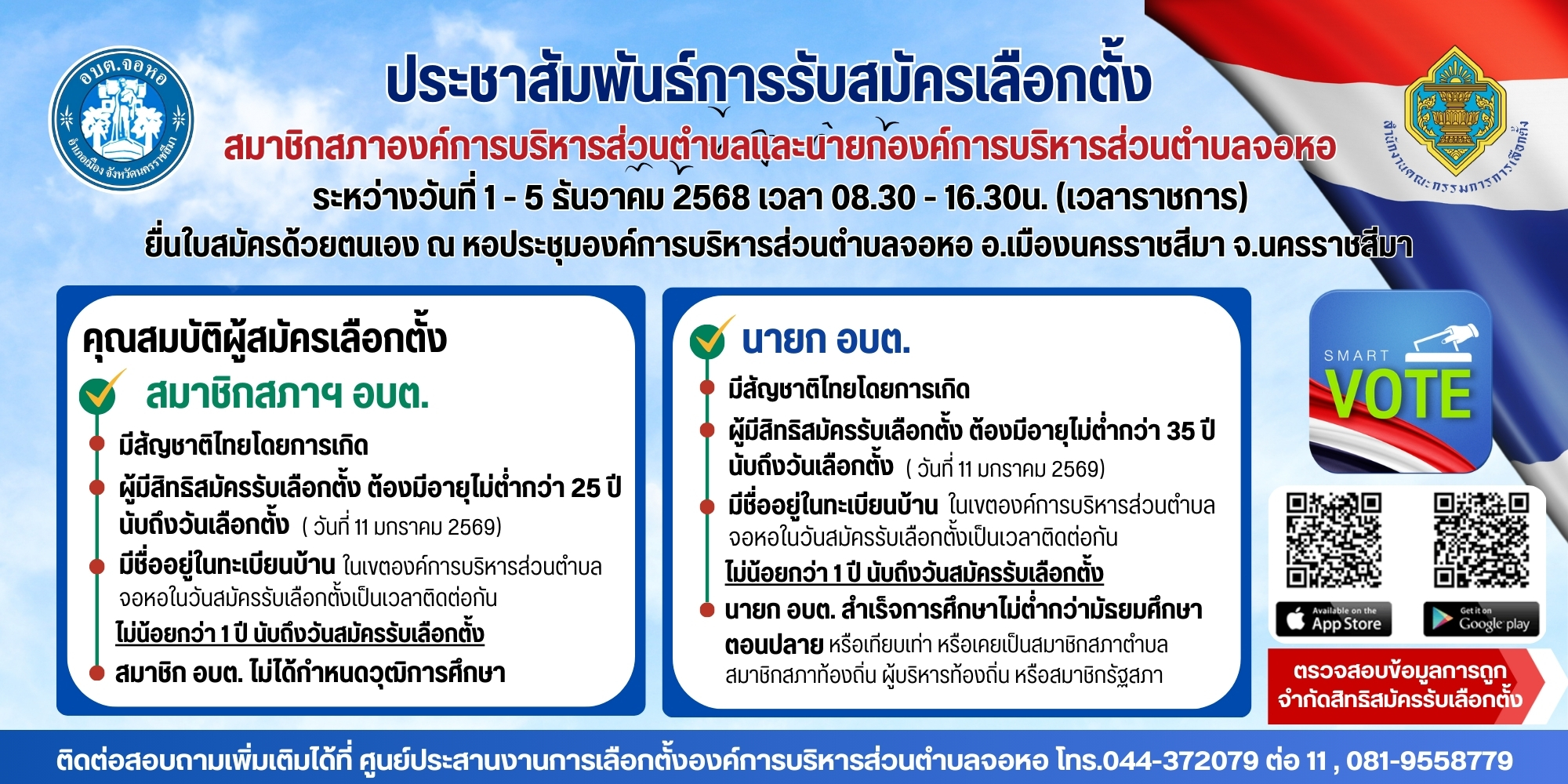 ประชาสัมพันธ์การรับสมัครเลือกตั้ง สมาชิกสภาองค์การบริหารส่วนตำบลจอหอและนายกองค์การบริหารส่วนตำบลจอหอ