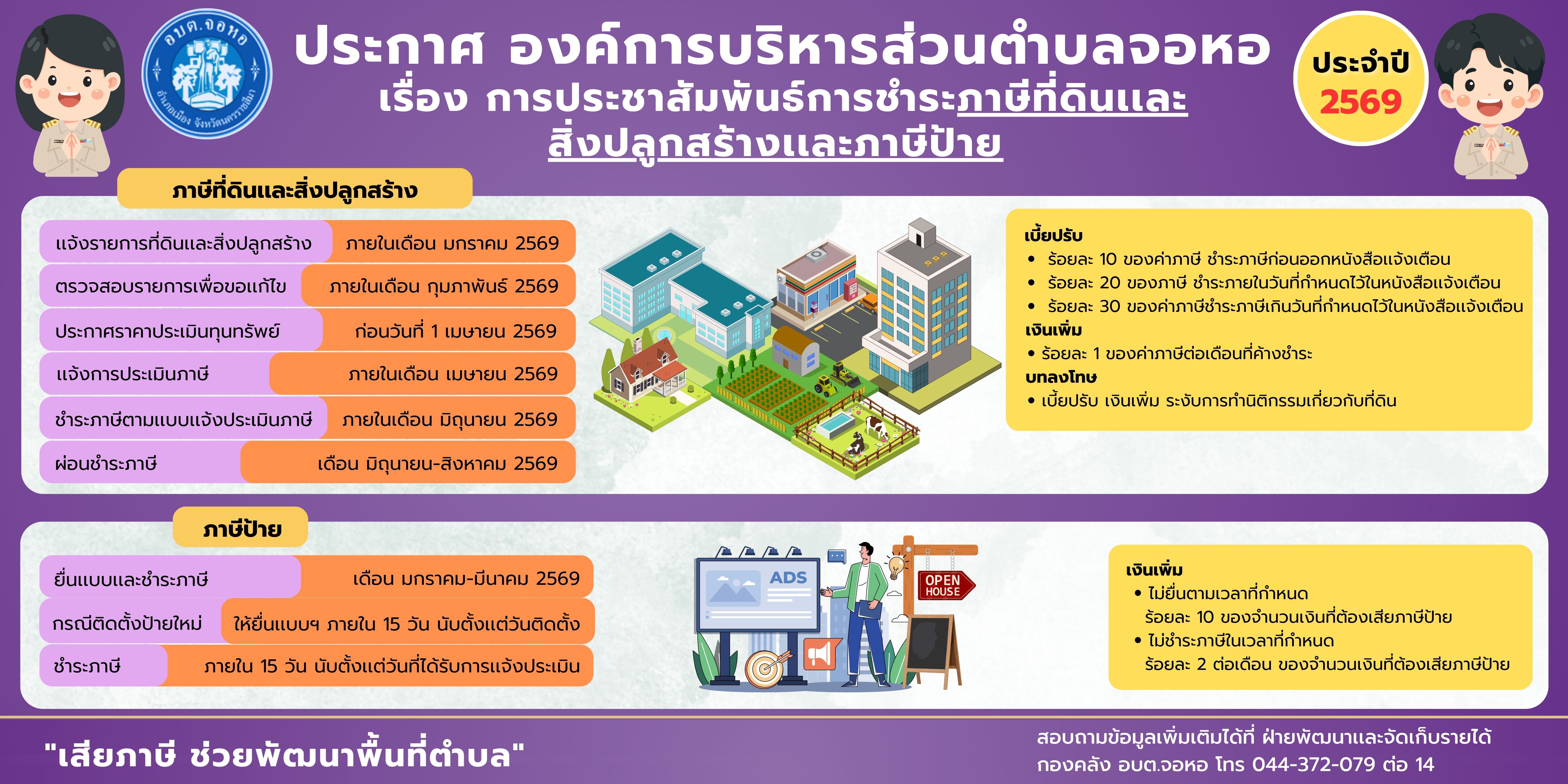 ประชาสัมพันธ์การชำระภาษีที่ดินและสิ่งปลูกสร้างและภาษีป้าย ประจำปี 2569
