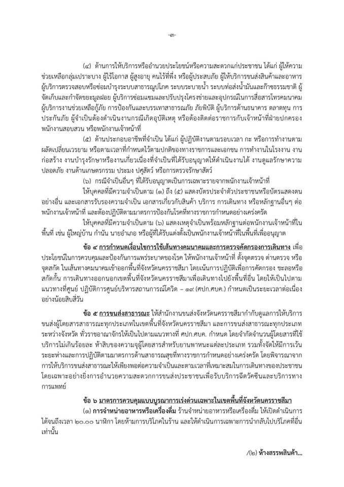 มาตรการในการเฝ้าระวัง ป้องกัน และควบคุมการแพร่ระบาดของโรคติดเชื้อไวรัสโคโรนา 2019 (โควิด -19) สำหรับพื้นที่ควบคุมสูงสุดและเข้มงวดของจังหวัดนครราชสีมา