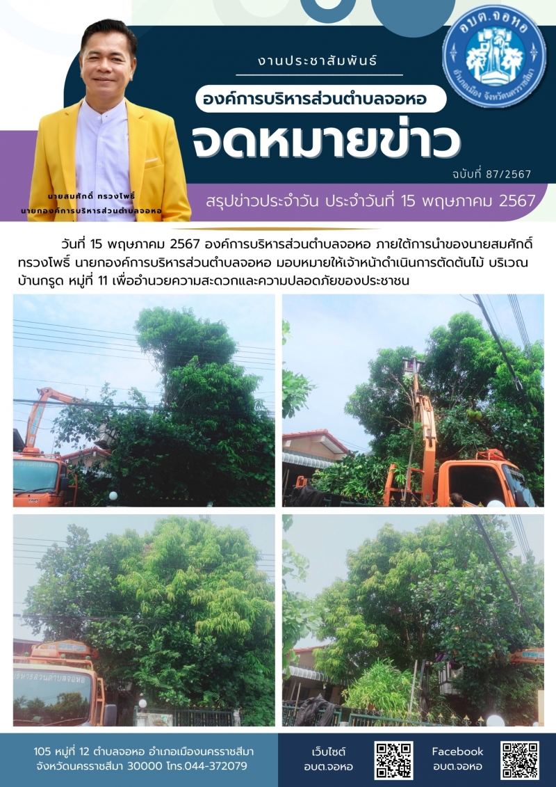 ประปาไม่ไหล ขอความอนุเคราะห์ตัดกิ่งไม้ และต้องการกำจัดรังต่อ สามารถประสานงานติดต่อสายตรง ท่านนายกสมศักดิ์ ทรวงโพธิ์