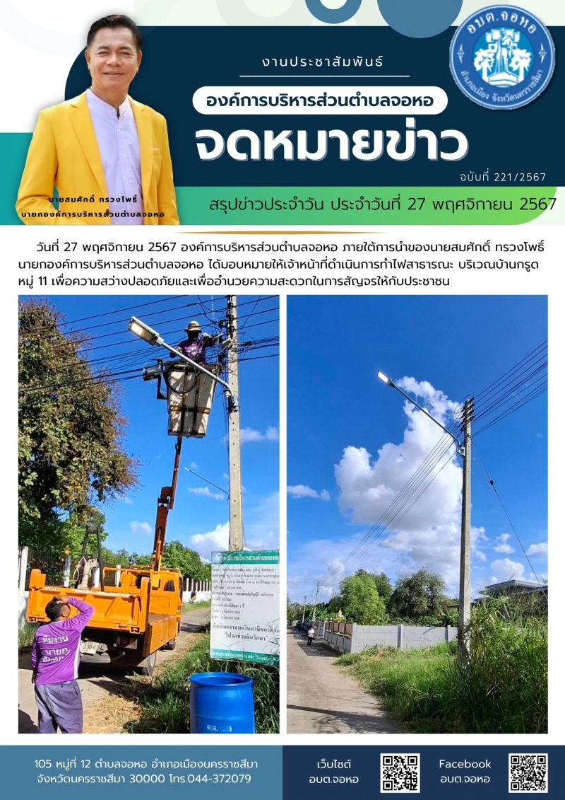 #งานประชาสัมพันธ์องค์การบริหารส่วนตำบลจอหอ 27 พฤศจิกายน 2567